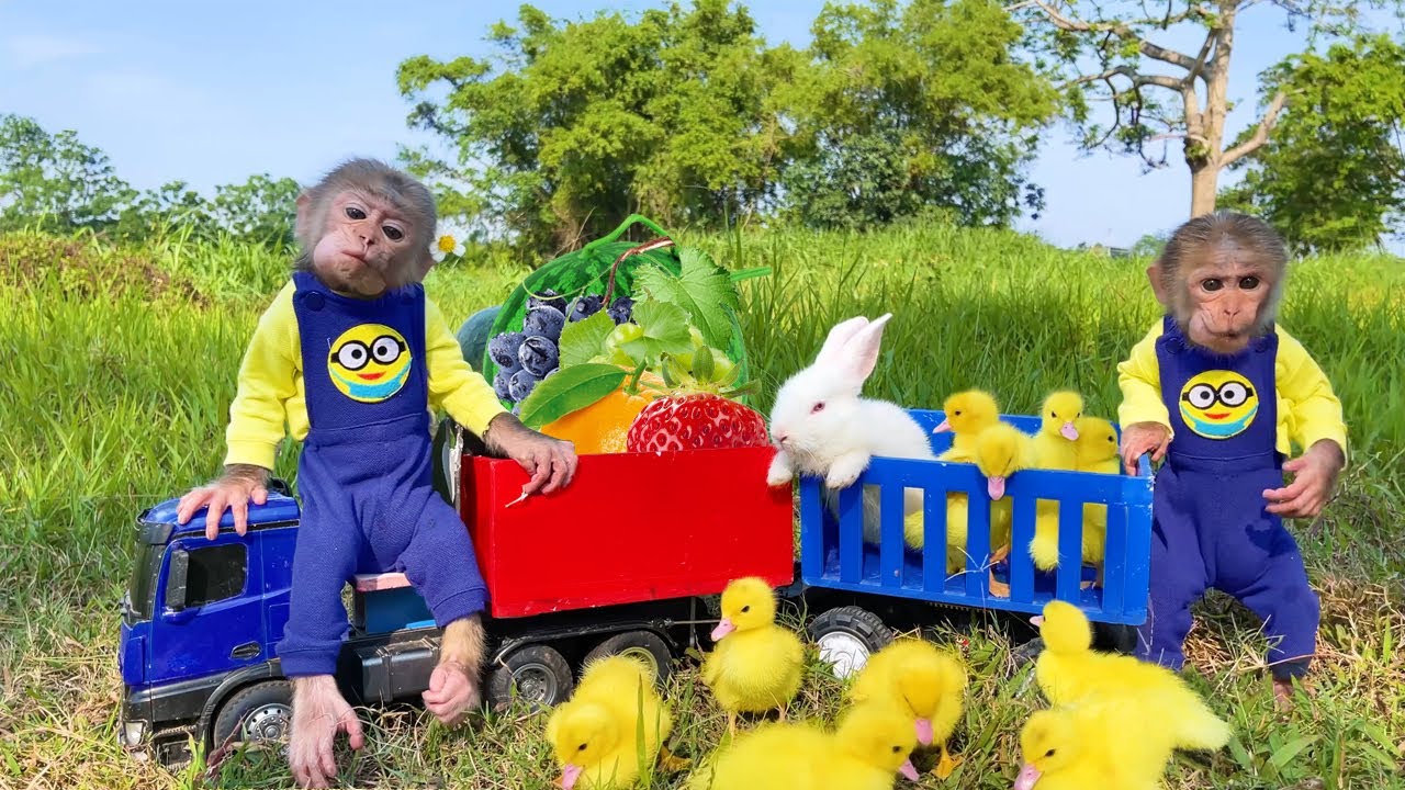 Bu Bu takes baby rabbits and duckling to harvest fruit