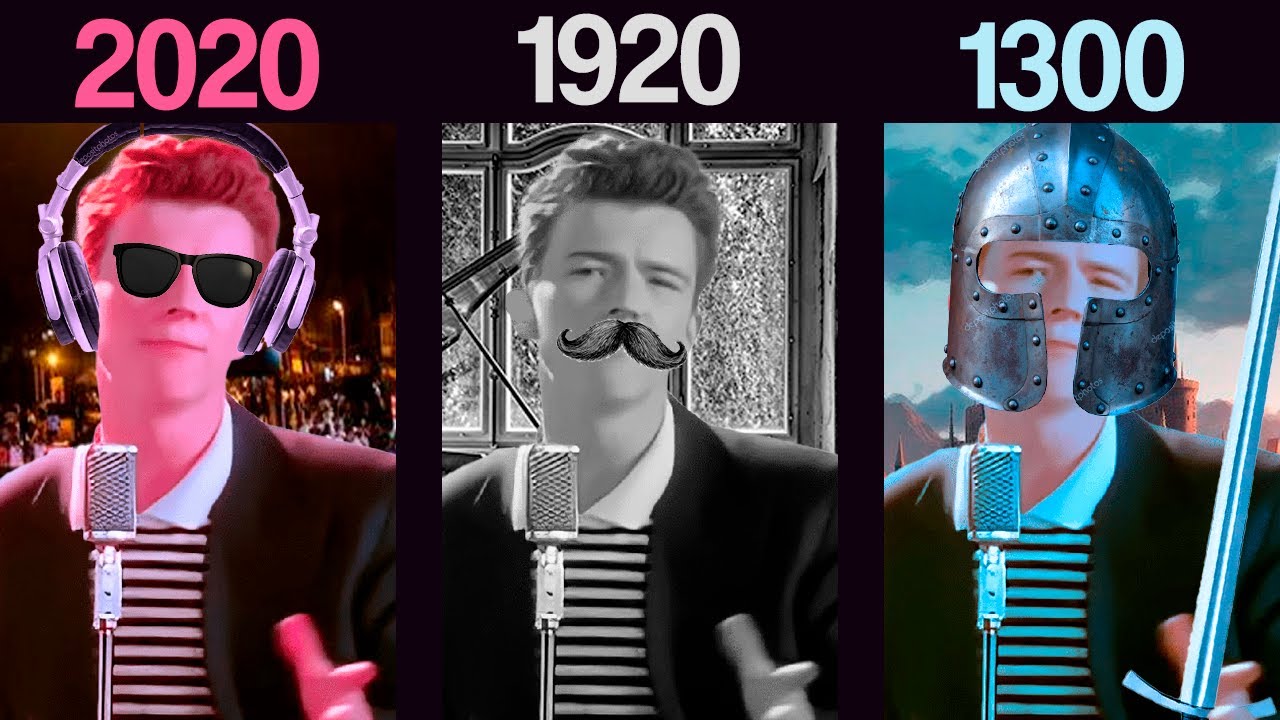 rick astley's never gonna give you up pero en diferentes epocas , cada vez mas viejo
