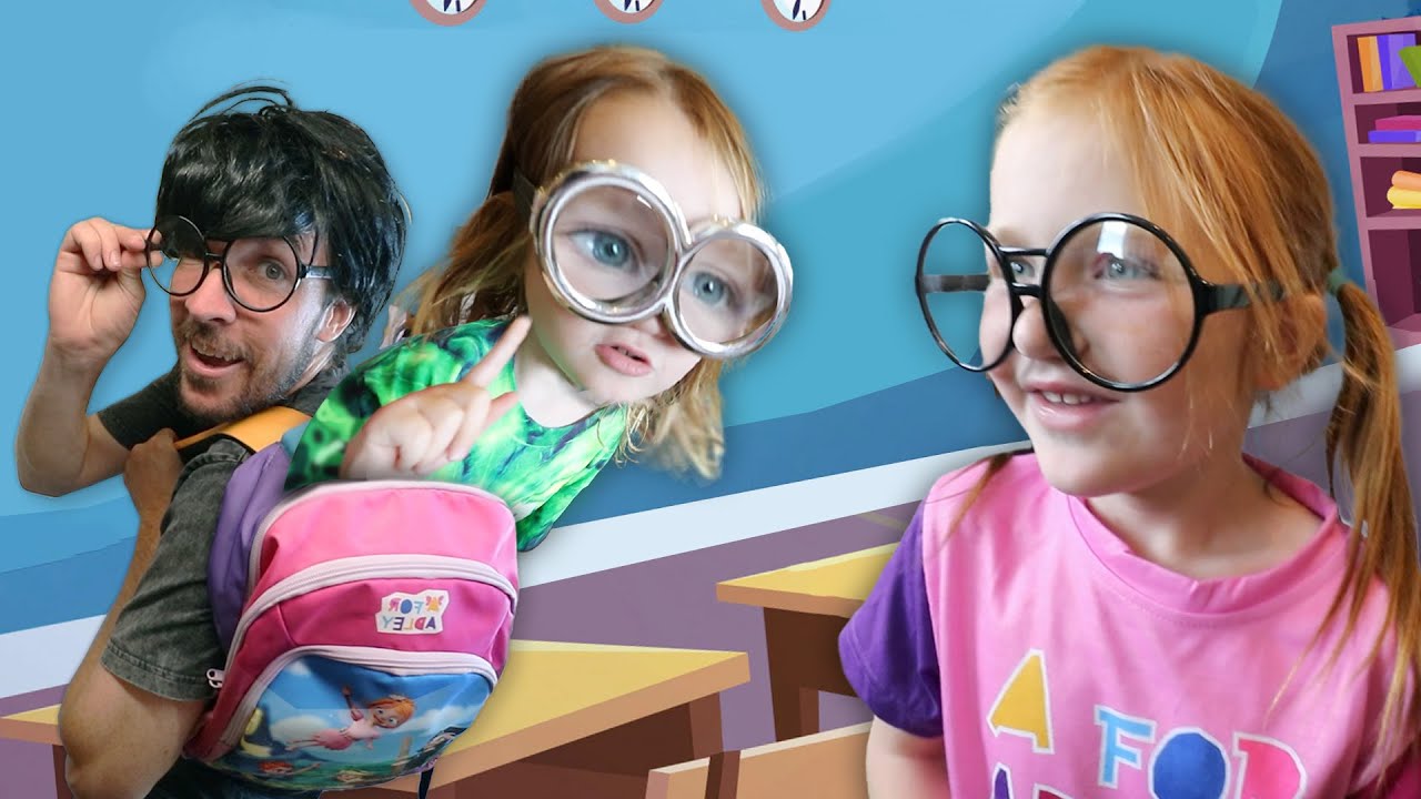 HEY EVERYBODY!! IT'S ALMOST TIME TO GO BACK TO SCHOOL!! So we decided to get some practice by playing pretend school with Teacher Dad! Before the first day of school me and Niko got all of our supplies ready but it was a REALLY busy morning so when we got to school we realized we forgot ALL of our supplies. Luckily, during school, we made a list of all the gear we need this year so that we could bring it tomorrow! When we got home from the first day we gathered up everything on our list like Backpacks, Folders, Pencil Pouches, Water Bottle, Scissors, Pencils, and Erasers! After we got all our stuff ready we went to sleep! When we woke up, we quickly did our morning routine then went back to school! This time we had ALL of our stuff! In school today we had a substitute teacher named Mr. Duggee. It was a super fun day of school because we had ART CLASS!! Art is my favorite class because I love to make crafts! Our sub told us to draw our favorite animals. I drew a giraffe, and Niko drew a weird animal I haven't heard of... We finished our drawings but Mr Duggee's hair fell off so he ran away! After he ran away our normal teacher Mr. Schneeble came back to finish the day! On our last day of school we did Reading and Math! While we were doing our homework, security guards surrounded the school so we had to escape! We made a plan with Mr. Schneeble, it was just like cops and robbers! Today was a BEST DAY EVER playing pretend school with Dad and Niko!