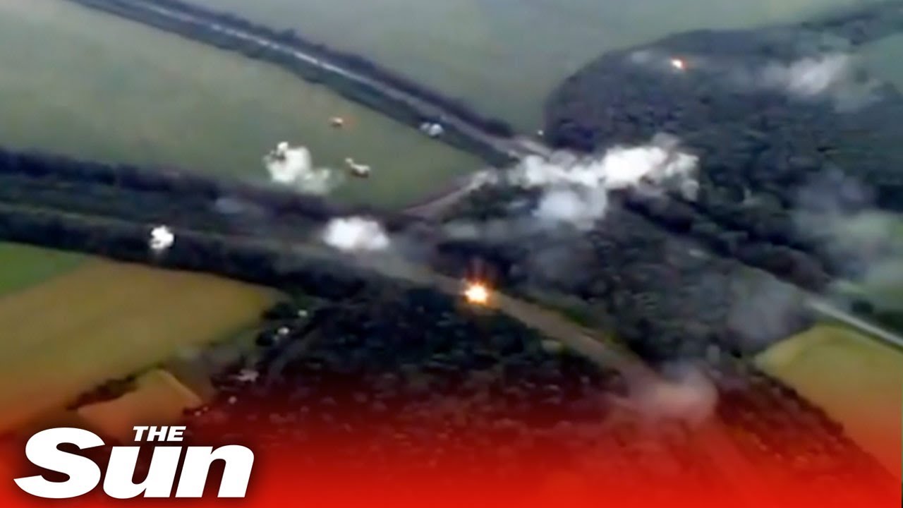 UKRAINIAN airborne assault troops taking out a convoy of Russian ammunition vehicles.
