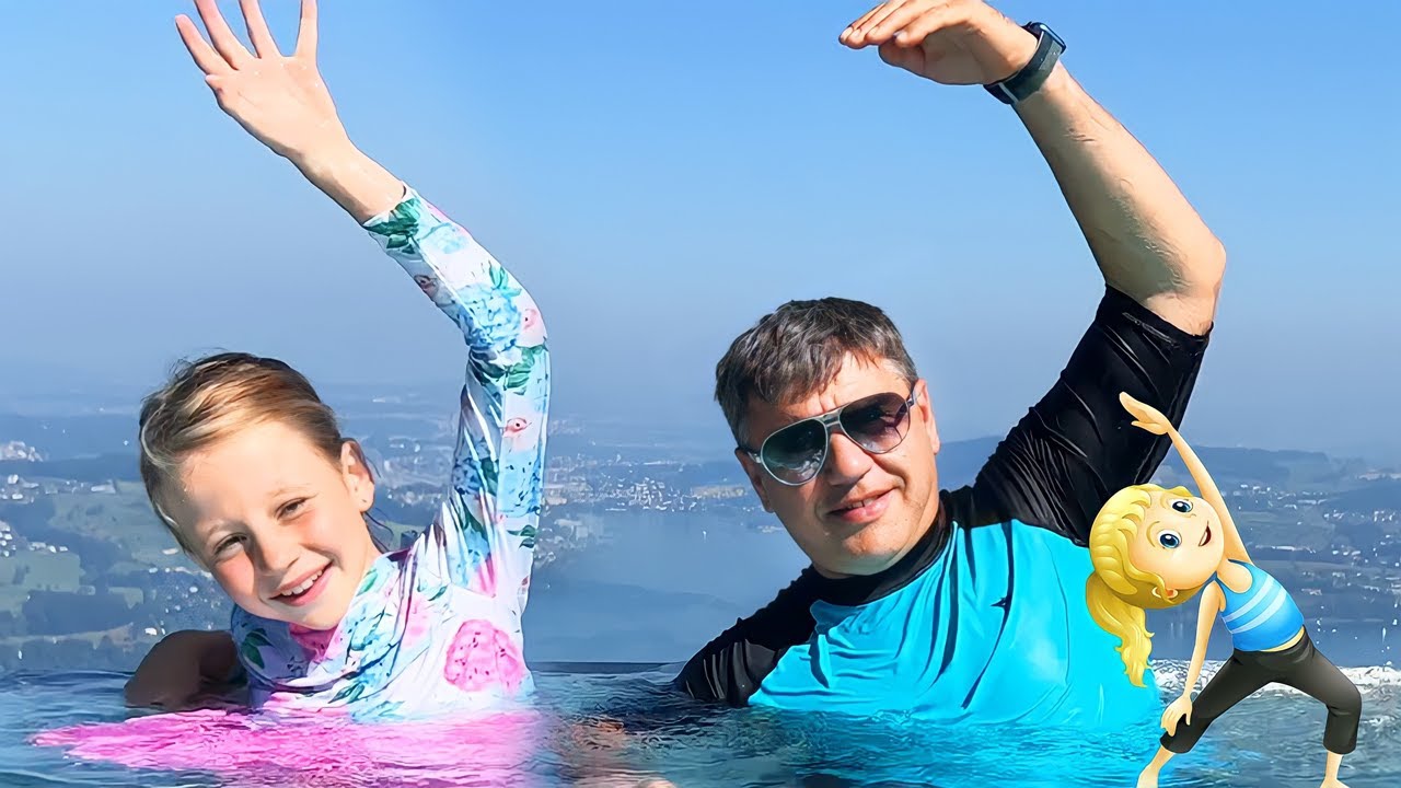 Nastya and Dad actively and have fun outdoors, attend children's entertainment, strengthen their health during the summer holidays.